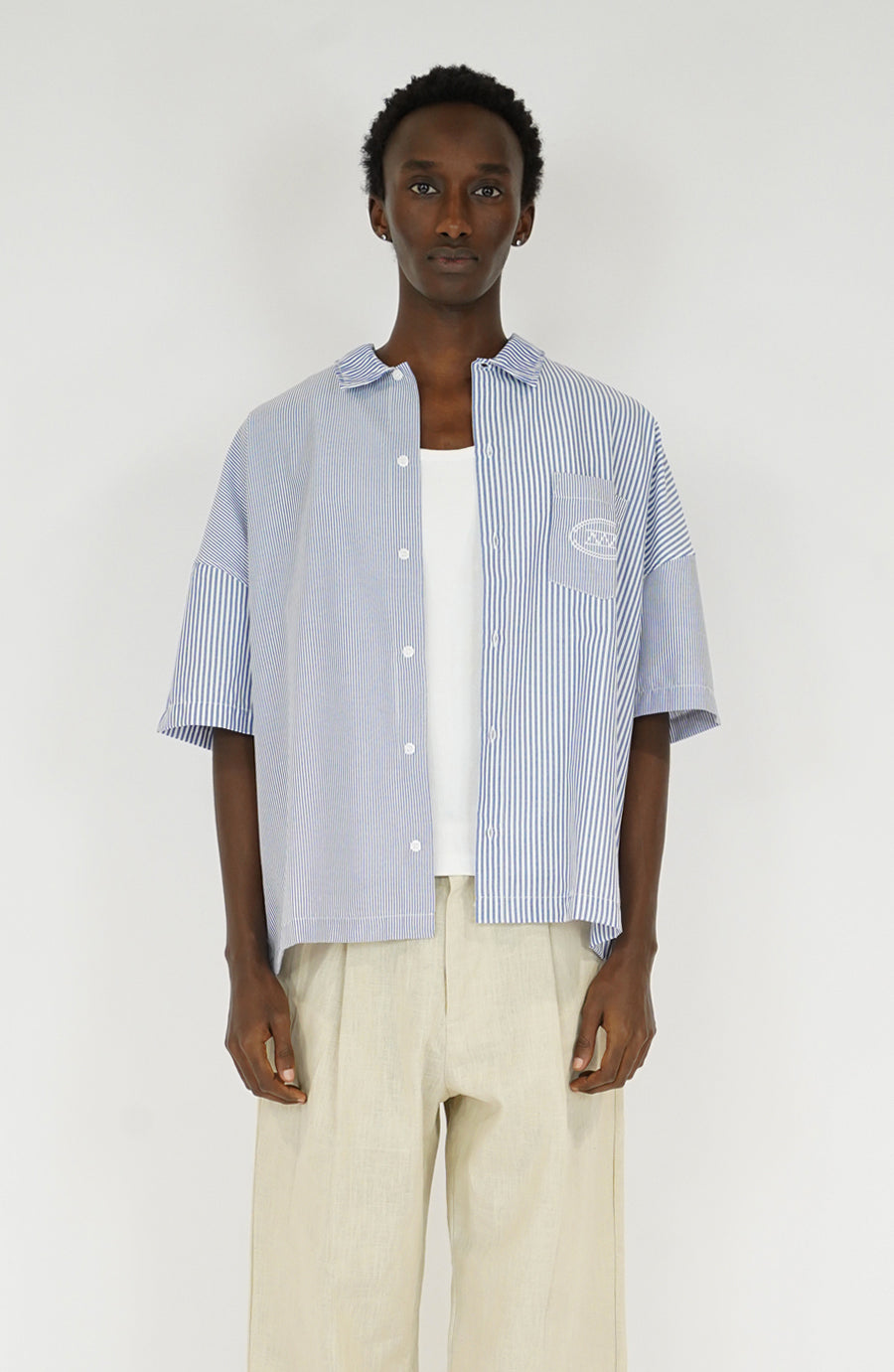 Fabriquée au Portugal, la chemise Stripe navy revisite avec subtilité le classique bleu marine et blanc à rayures. Elle alterne deux types de lignes — fines et larges — pour créer un contraste graphique tout en douceur, à la fois moderne et intemporel.