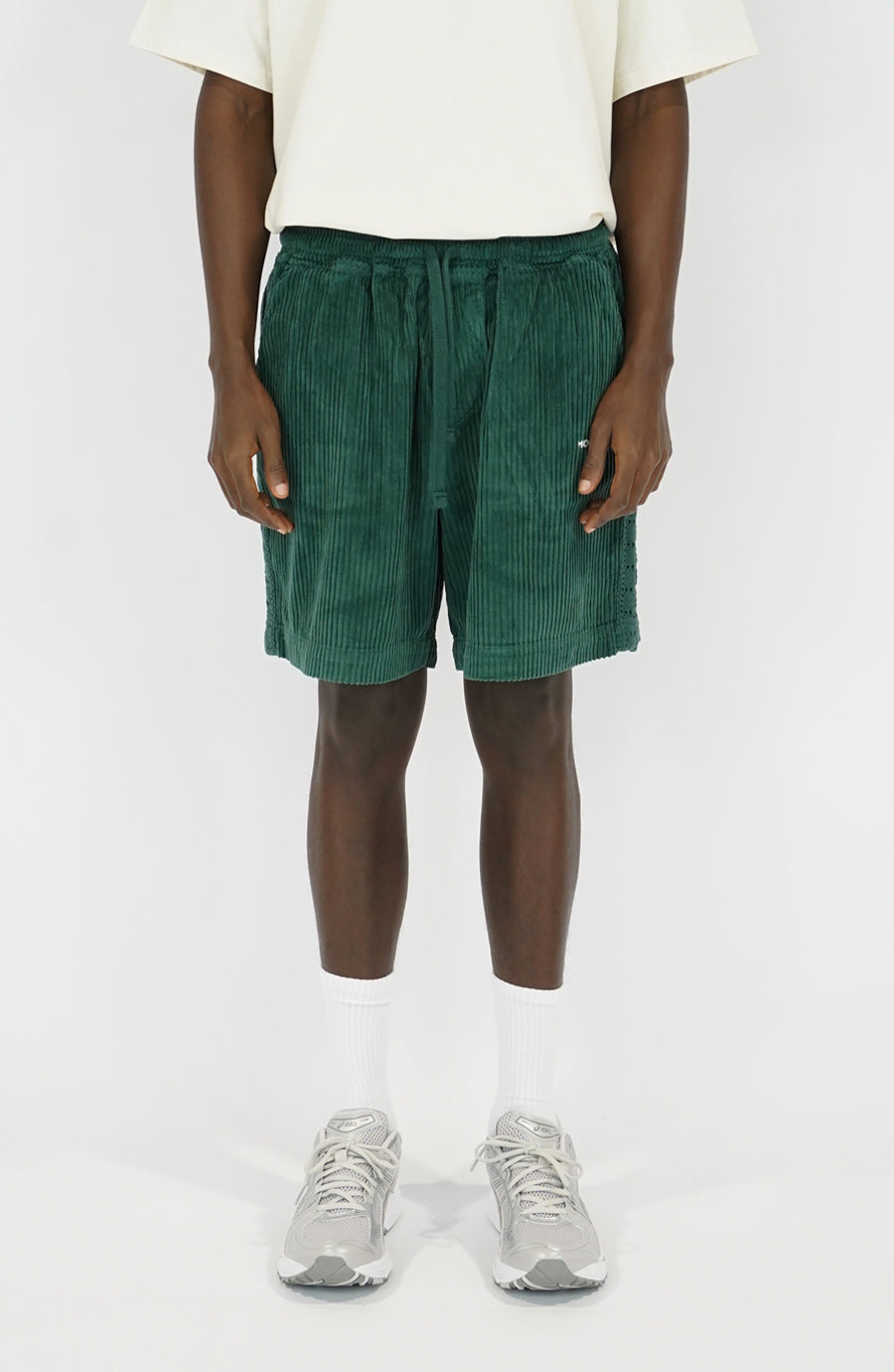 Issu de l'ensemble phare de la collection Printemps-Été 2026, ce short en velours vert forêt incarne une vision streetwear de l’élégance décontractée propre à l’univers Hologram. Confectionné au Portugal en 100 % coton, il séduit par la richesse de sa matière et la précision de ses finitions.
