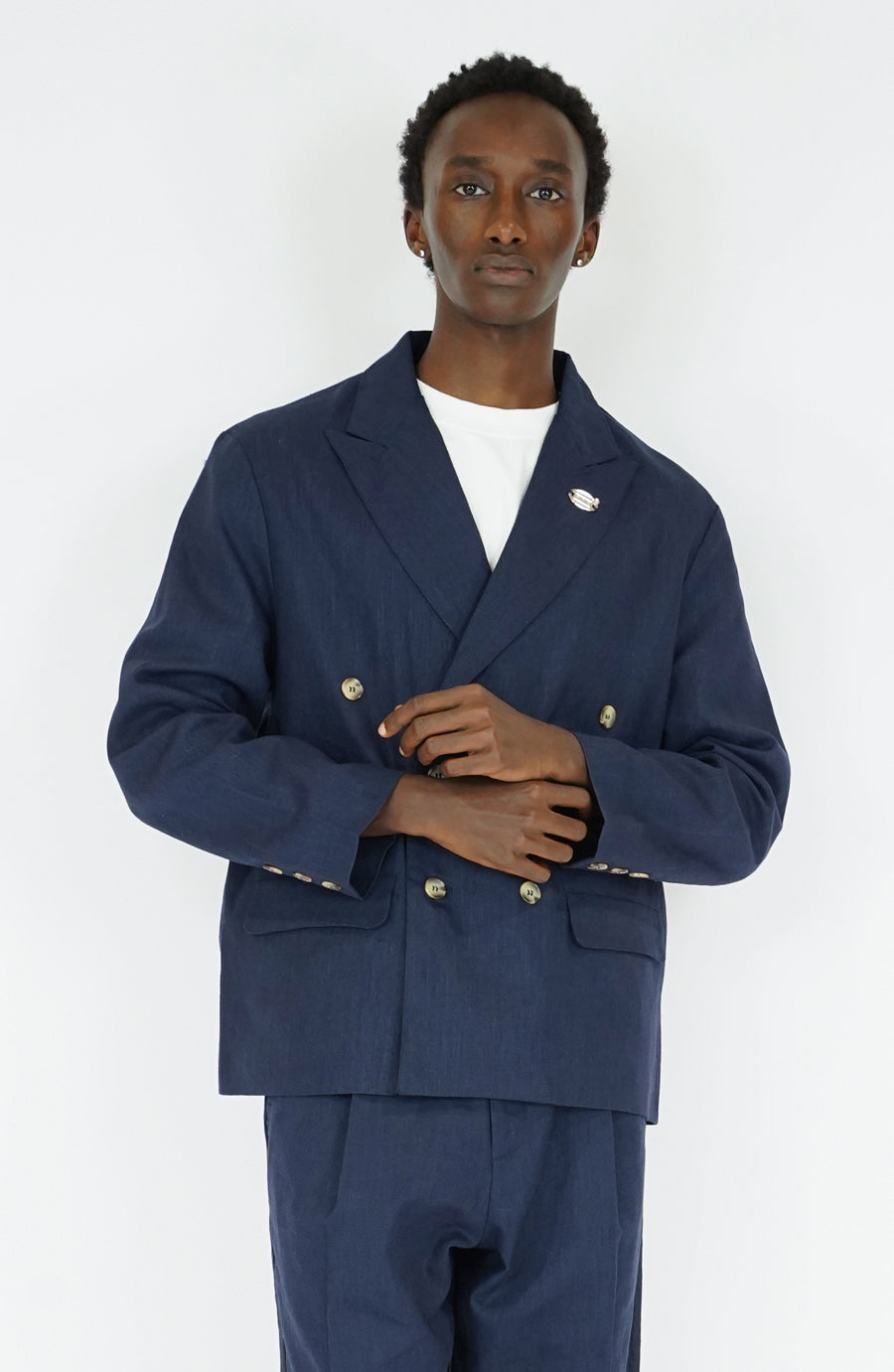 Complément élégant du pantalon Light Navy, cette veste streetwear de la collection Printemps-Été 2026 revisite le tailoring avec une touche contemporaine propre à Hologram. Confectionnée au Portugal en mélange lin et coton, elle séduit par sa légèreté et la précision de ses finitions.